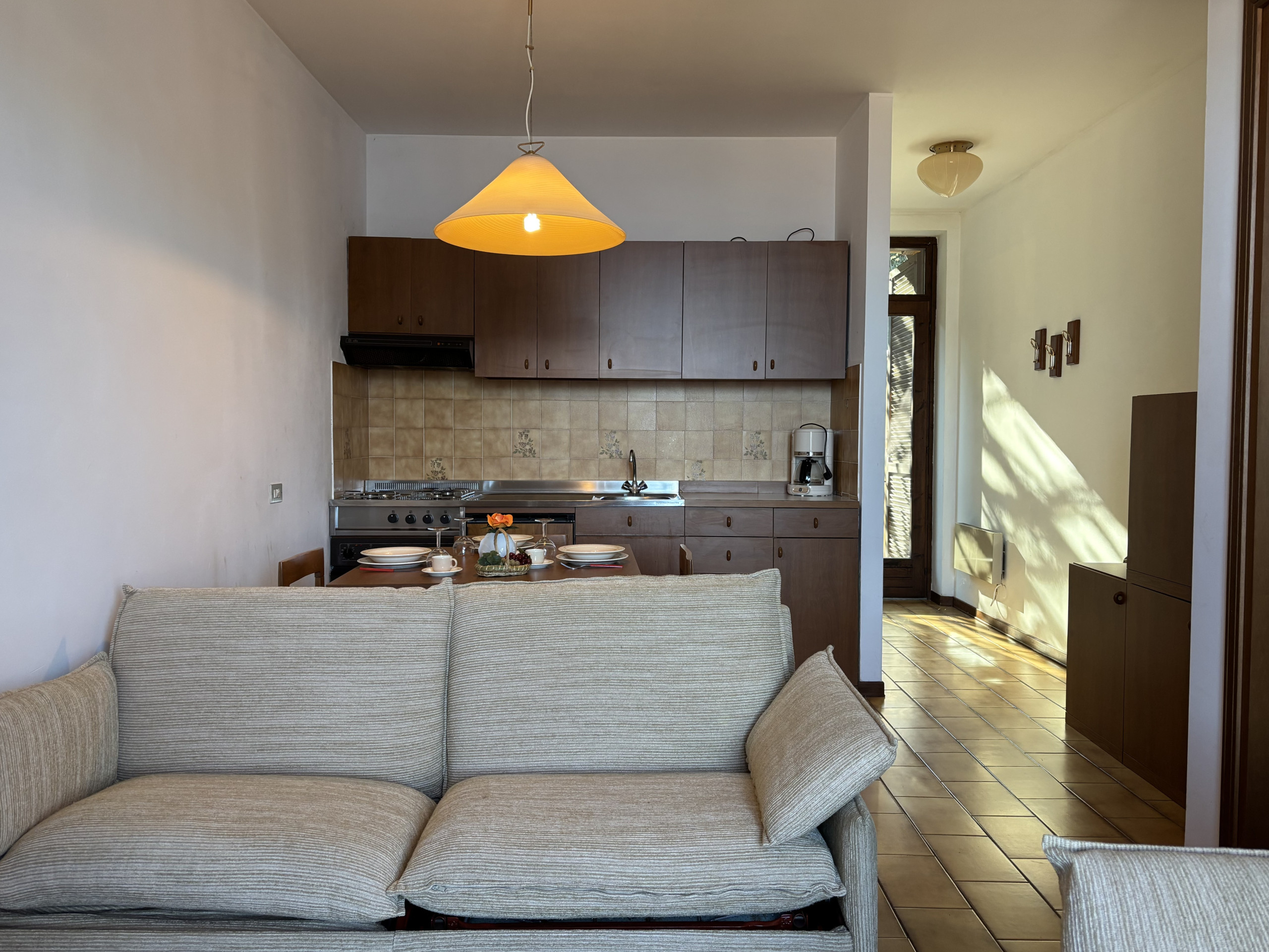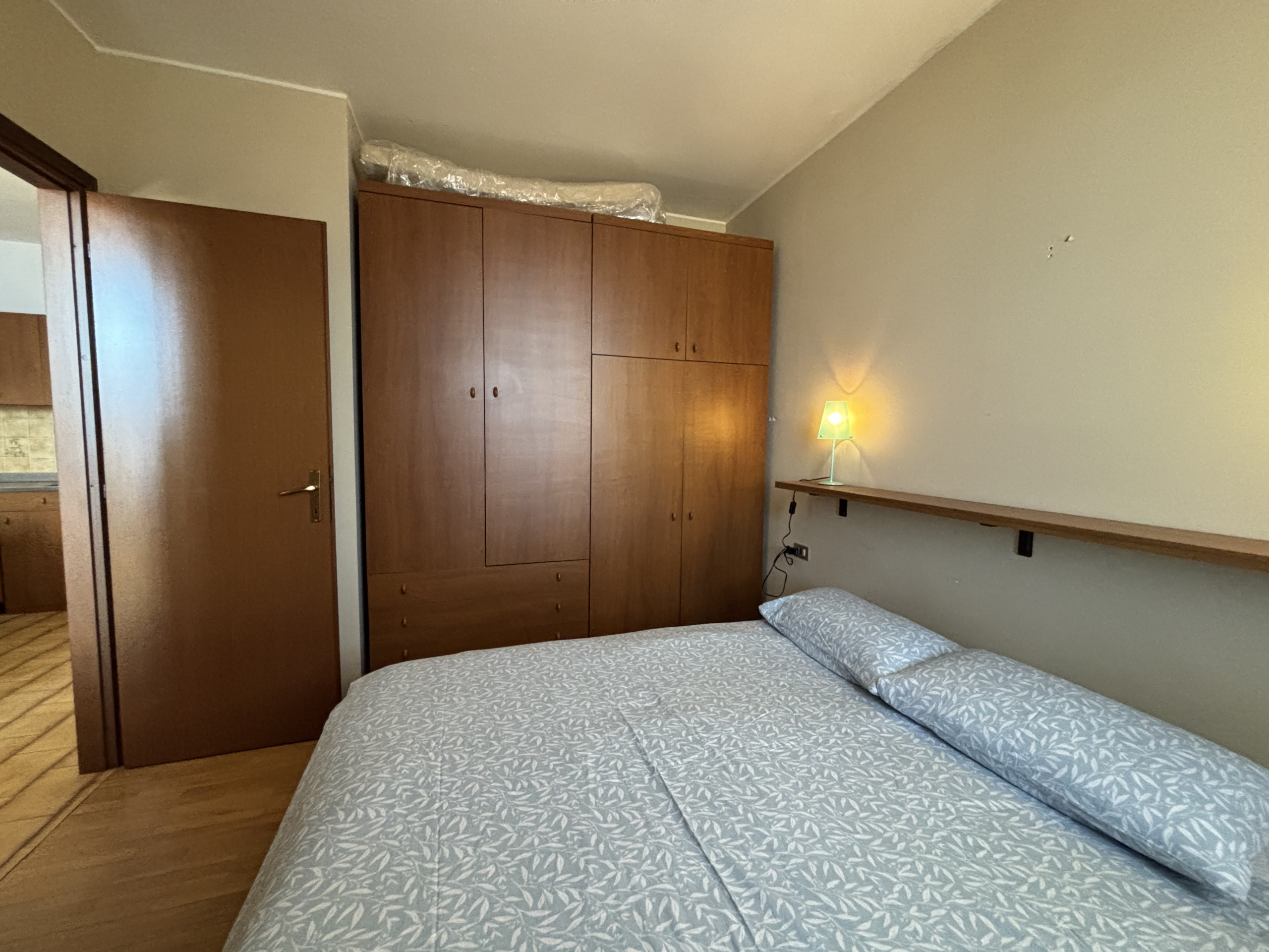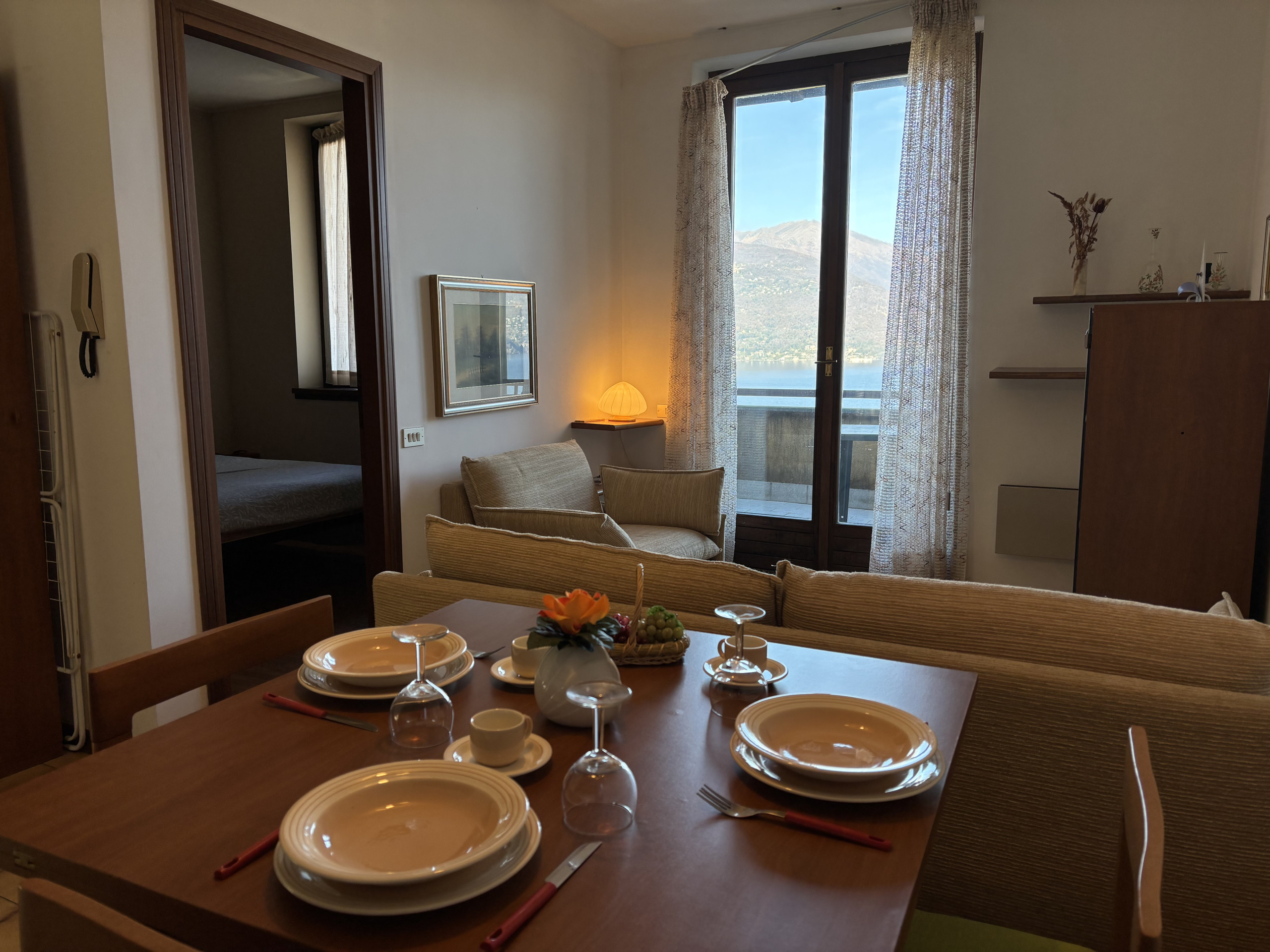 Al 5° piano è raggiungibile con ascensore ed è dotato di un piccolo ma confortevole soggiorno con divano letto per due persone, una cucina abitabile e camera da letto doppia con due letti singoli avvicinabili. Dal piccolo balcone la vista spazia sulle montagne e il lago. Un piccolo bagnetto con doccia e lavatrice completano l'appartamento.