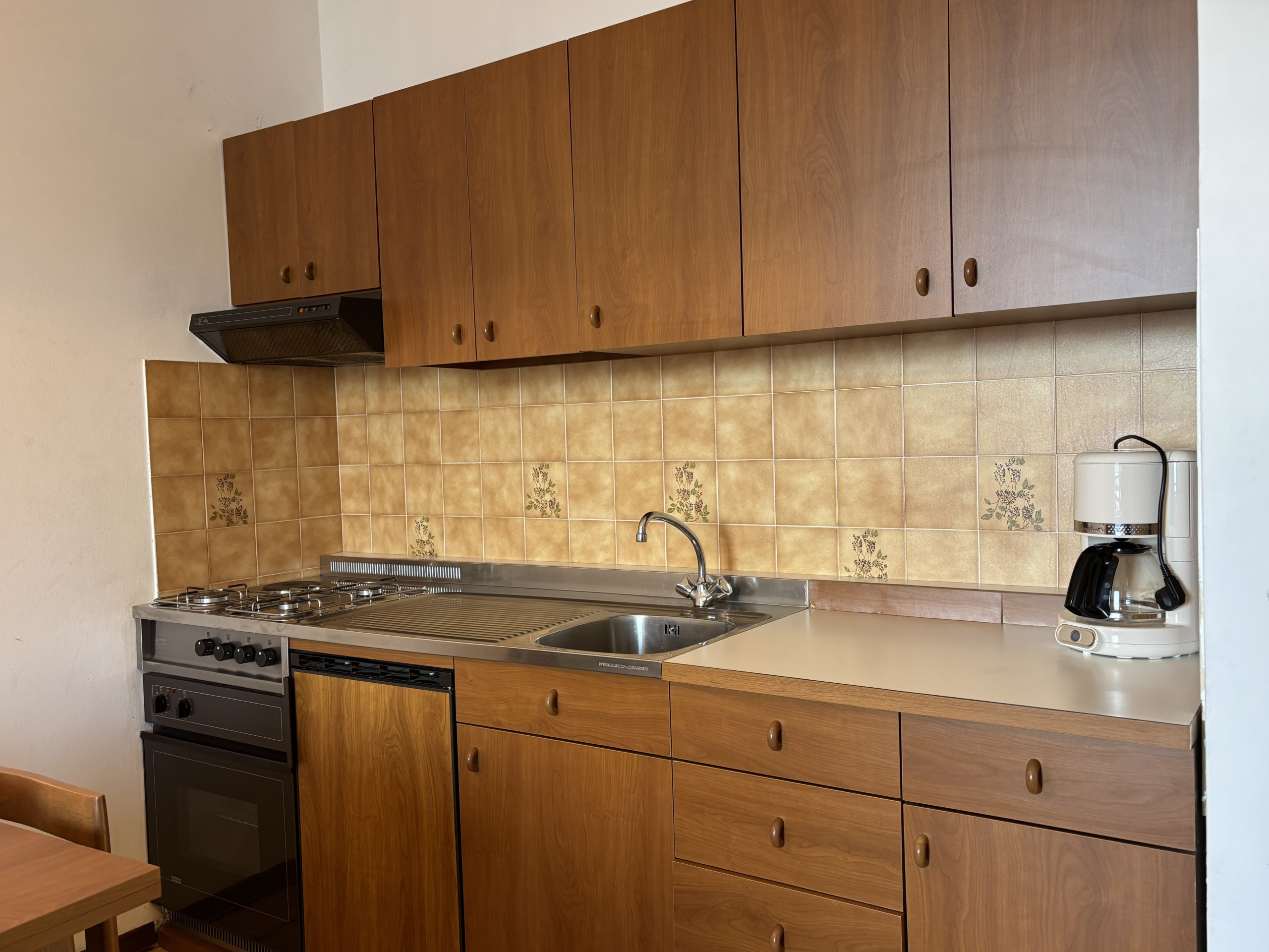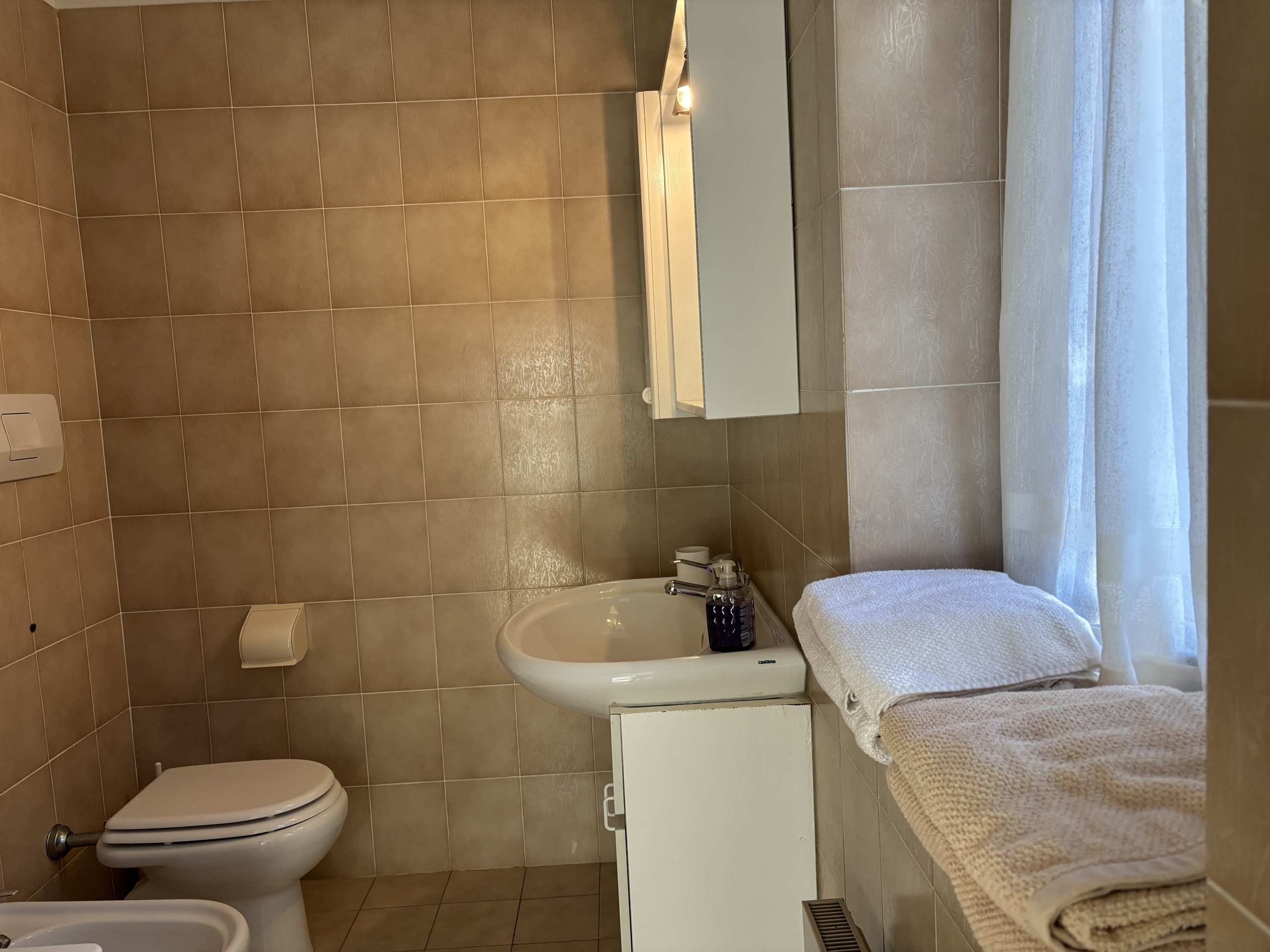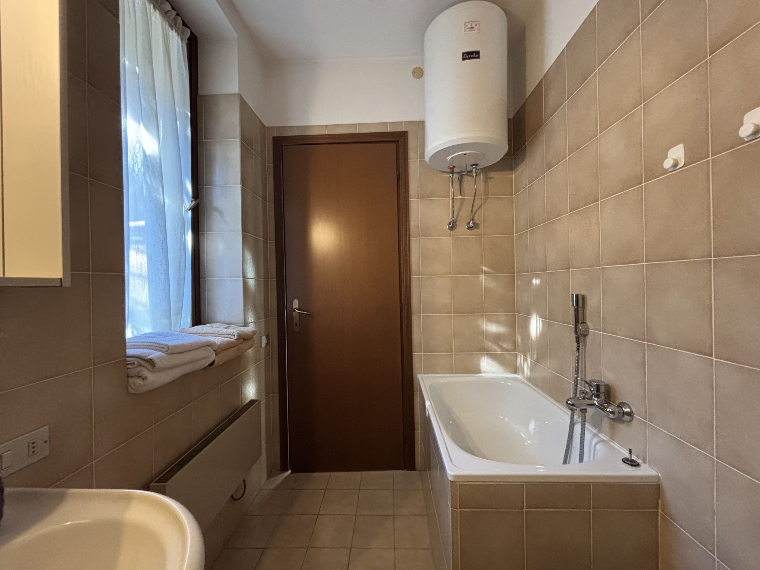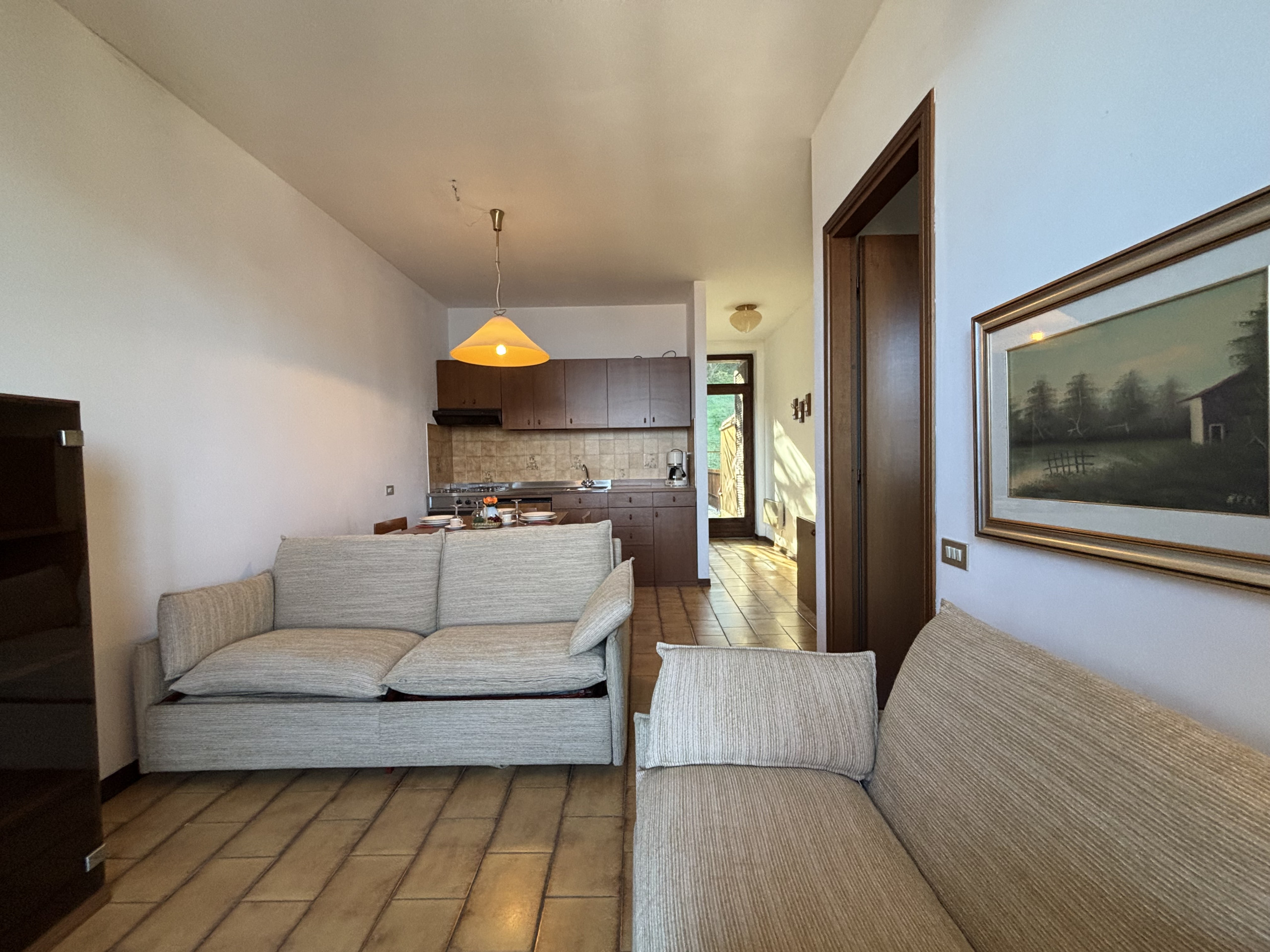 Al 5° piano è raggiungibile con ascensore ed è dotato di un piccolo ma confortevole soggiorno con divano letto per due persone, una cucina abitabile e camera da letto doppia con due letti singoli avvicinabili. Dal piccolo balcone la vista spazia sulle montagne e il lago. Un piccolo bagnetto con doccia e lavatrice completano l'appartamento.