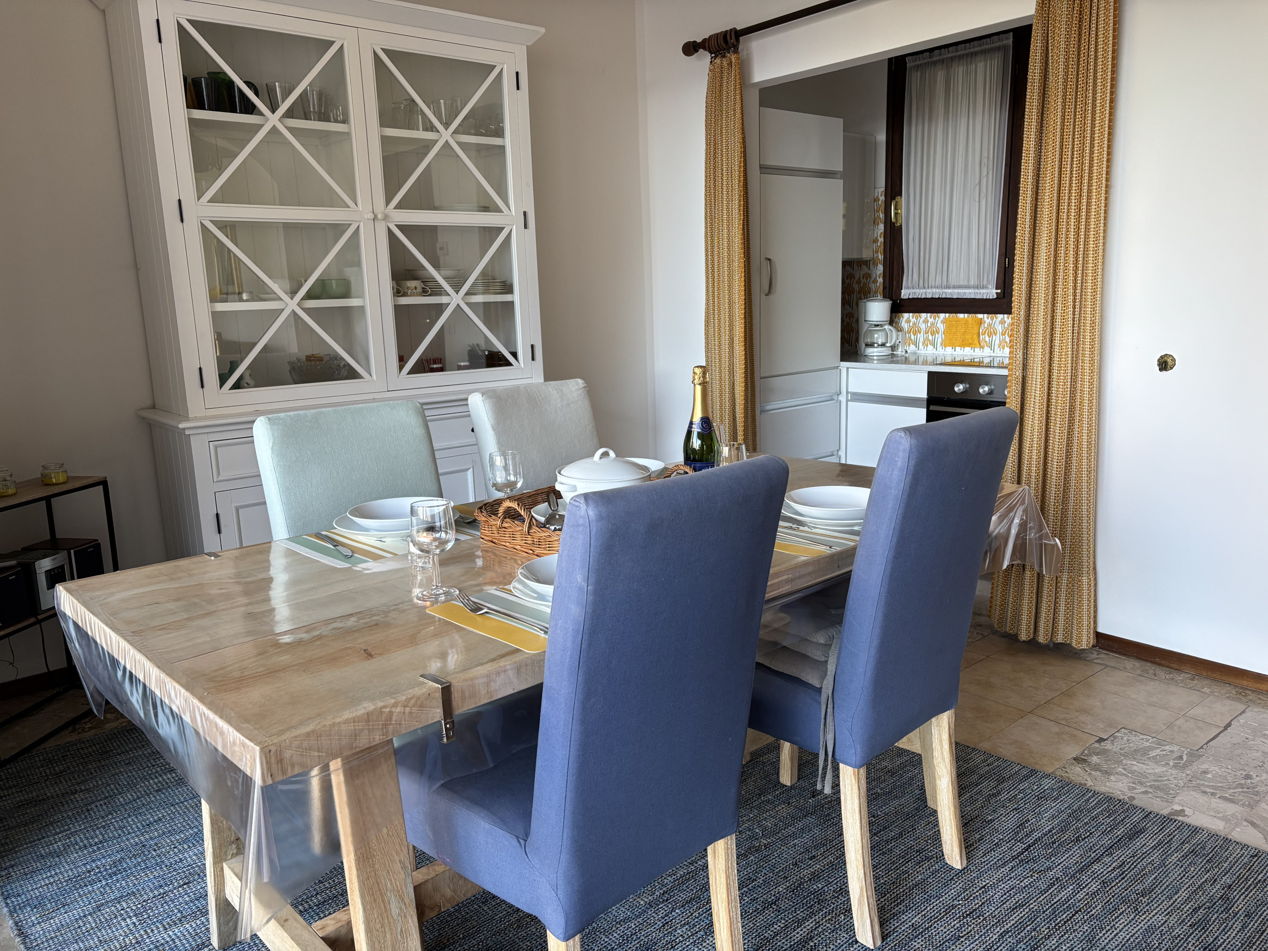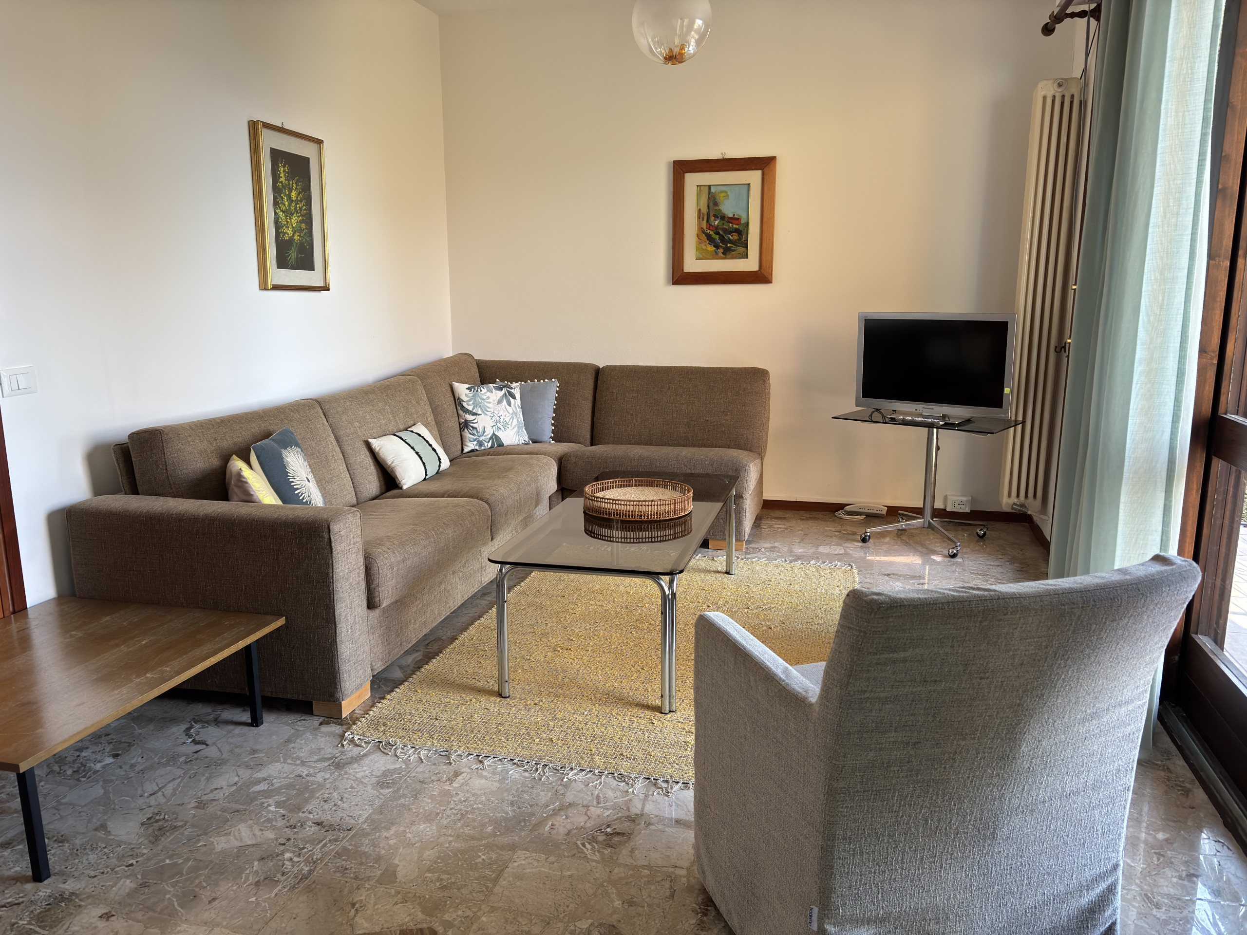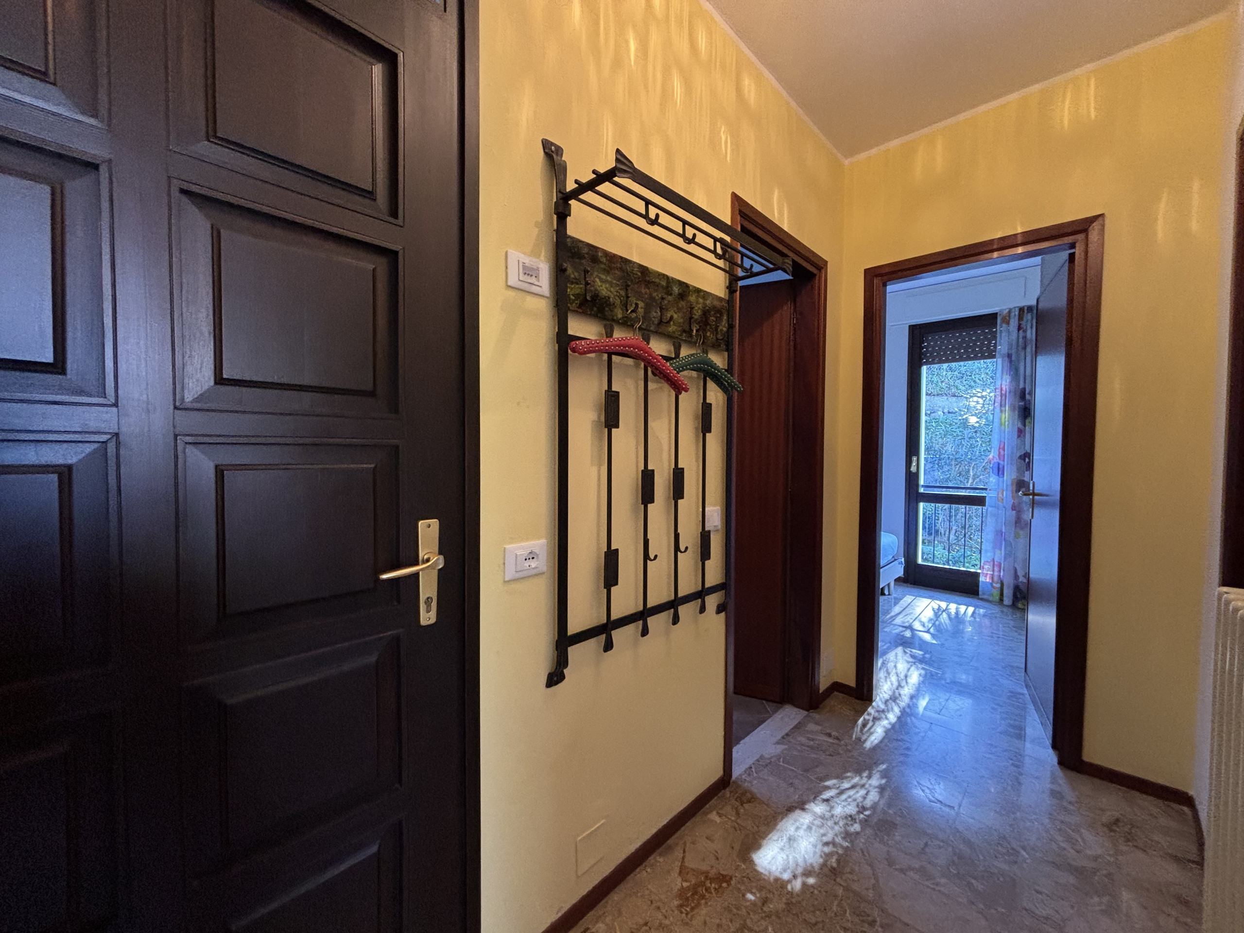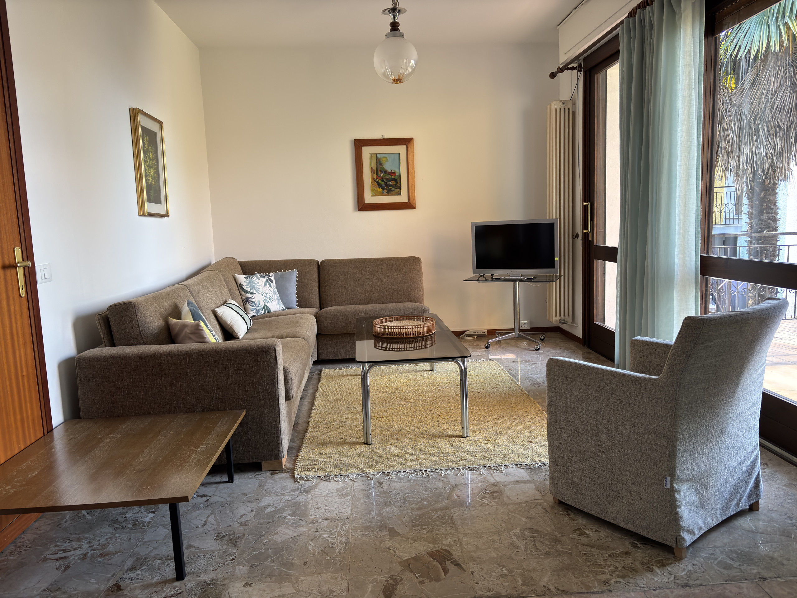 Al piano terra di una casetta a schiera, immersa nel verde di un grande parco con piscina non lontano dal centro di Luino e dal lago, vi è un grazioso appartamento, dalla superficie di circa 80mq, arredato con gusto e in modo accogliente, e munito di un adorabile piccolo giardino privato. L'appartamento è composto da un luminoso soggiorno, munito di una graziosa zona da pranzo con camino, una cucina separata assai funzionale, un ampio bagno e 2 camere da letto, per un totale di 5 posti letto. L'area esterna, oltre che dal grazioso giardinetto sopramenzionato, include anche una terrazza coperta annessa a quest'ultimo, e la zona vede che circonda la piscina, di utilizzo pubblico, già citato. La casa dispone inoltre di TV satellitare, lavastoviglie e un parcheggio privato. Animali ammessi a pagamento.
