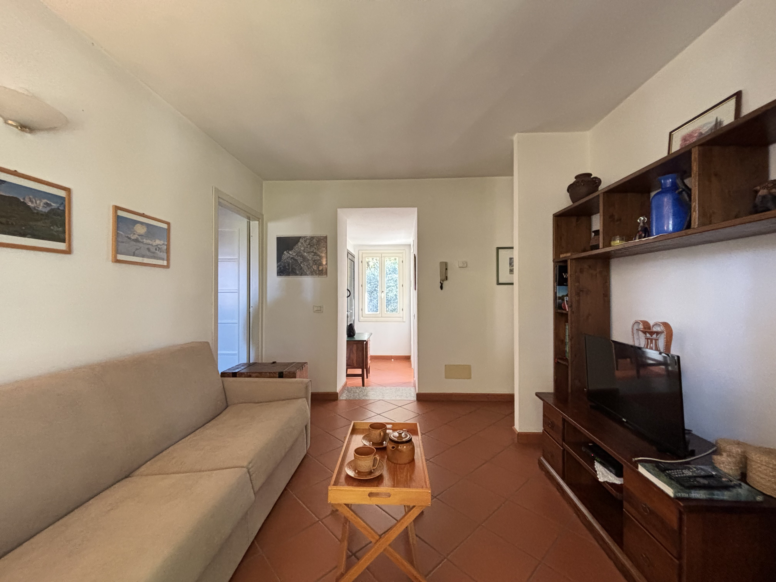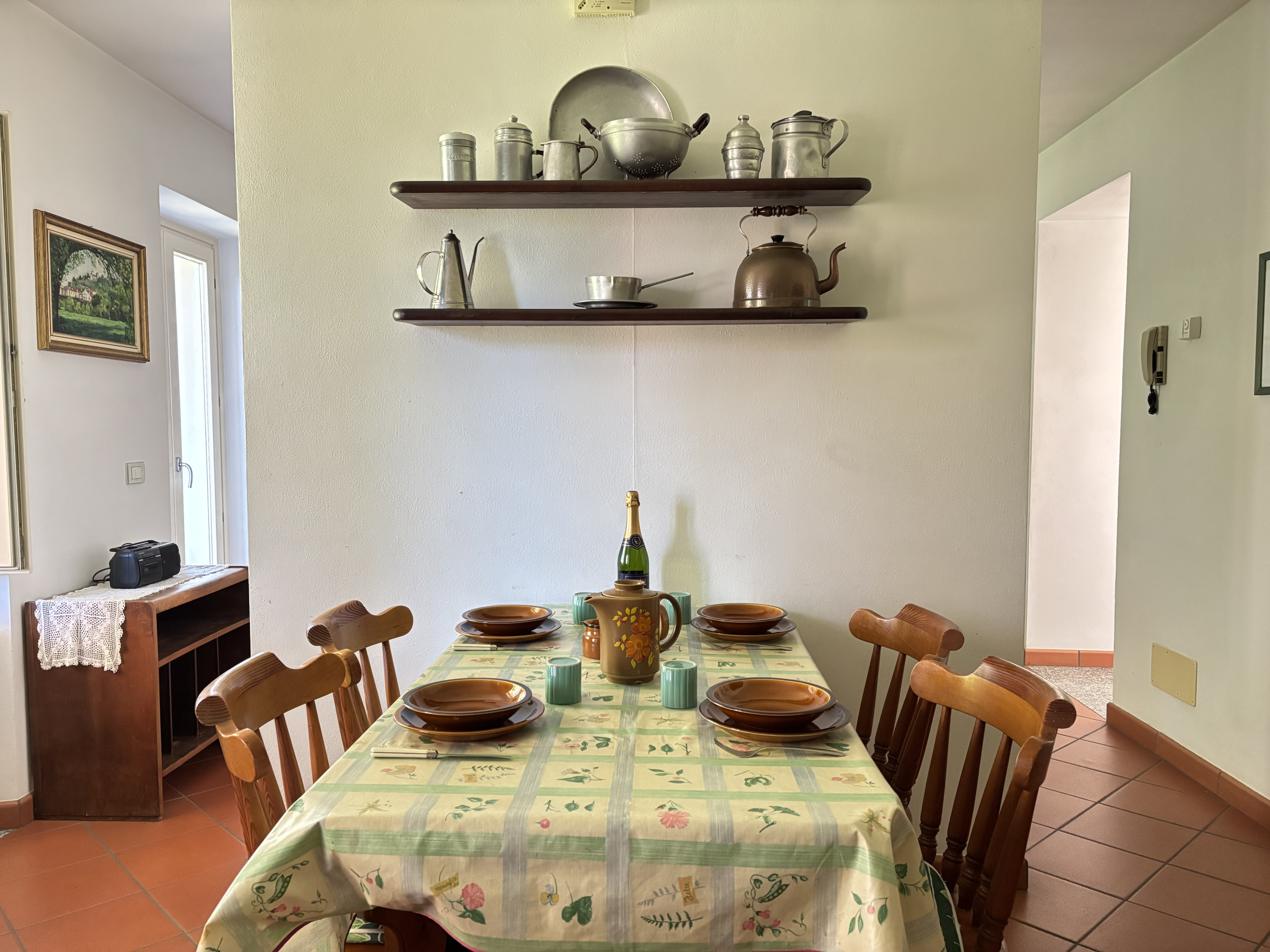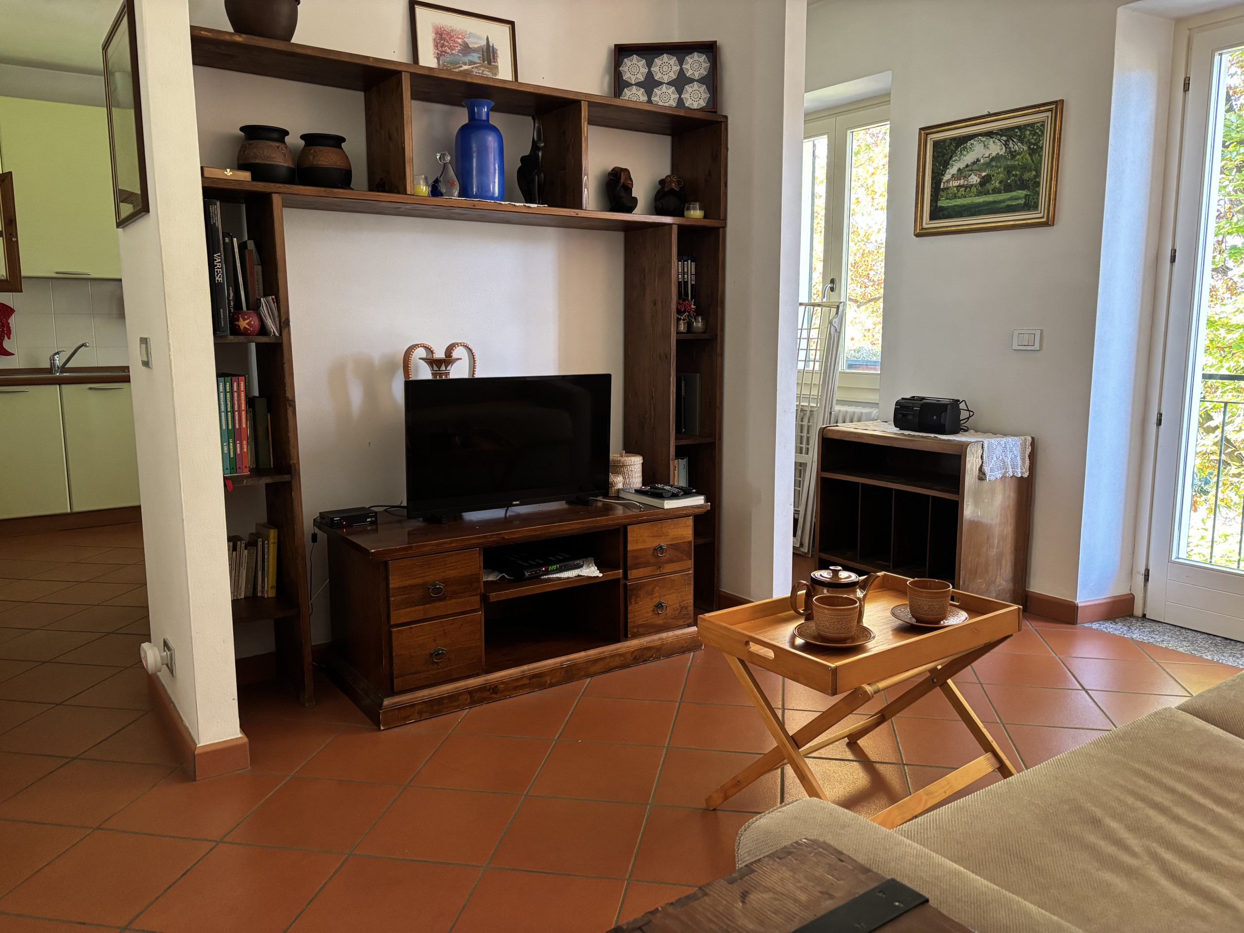 Al piano terra di una casetta a schiera, immersa nel verde di un grande parco con piscina non lontano dal centro di Luino e dal lago, vi è un grazioso appartamento, dalla superficie di circa 80mq, arredato con gusto e in modo accogliente, e munito di un adorabile piccolo giardino privato. L'appartamento è composto da un luminoso soggiorno, munito di una graziosa zona da pranzo con camino, una cucina separata assai funzionale, un ampio bagno e 2 camere da letto, per un totale di 5 posti letto. L'area esterna, oltre che dal grazioso giardinetto sopramenzionato, include anche una terrazza coperta annessa a quest'ultimo, e la zona vede che circonda la piscina, di utilizzo pubblico, già citato. La casa dispone inoltre di TV satellitare, lavastoviglie e un parcheggio privato. Animali ammessi a pagamento.