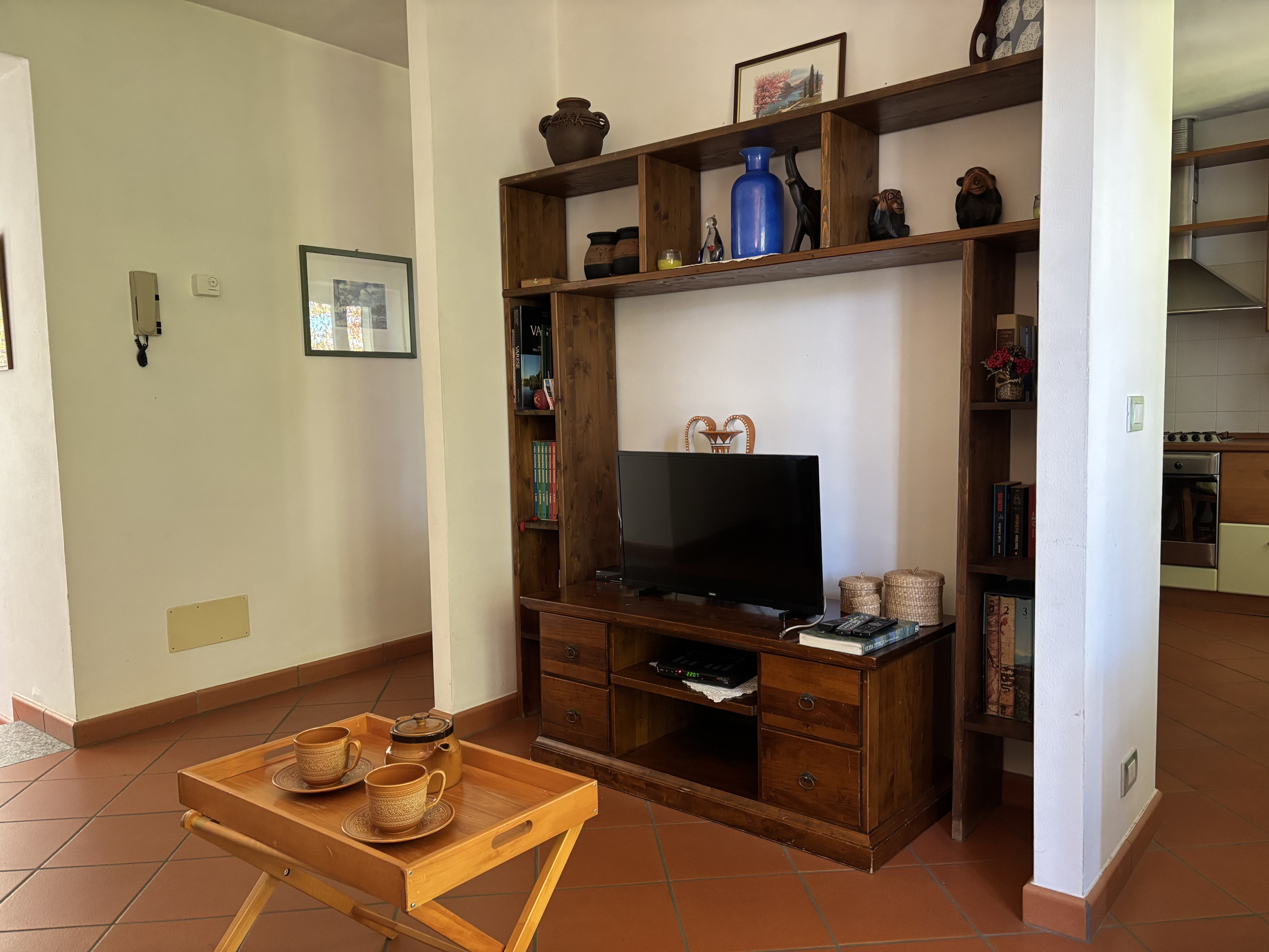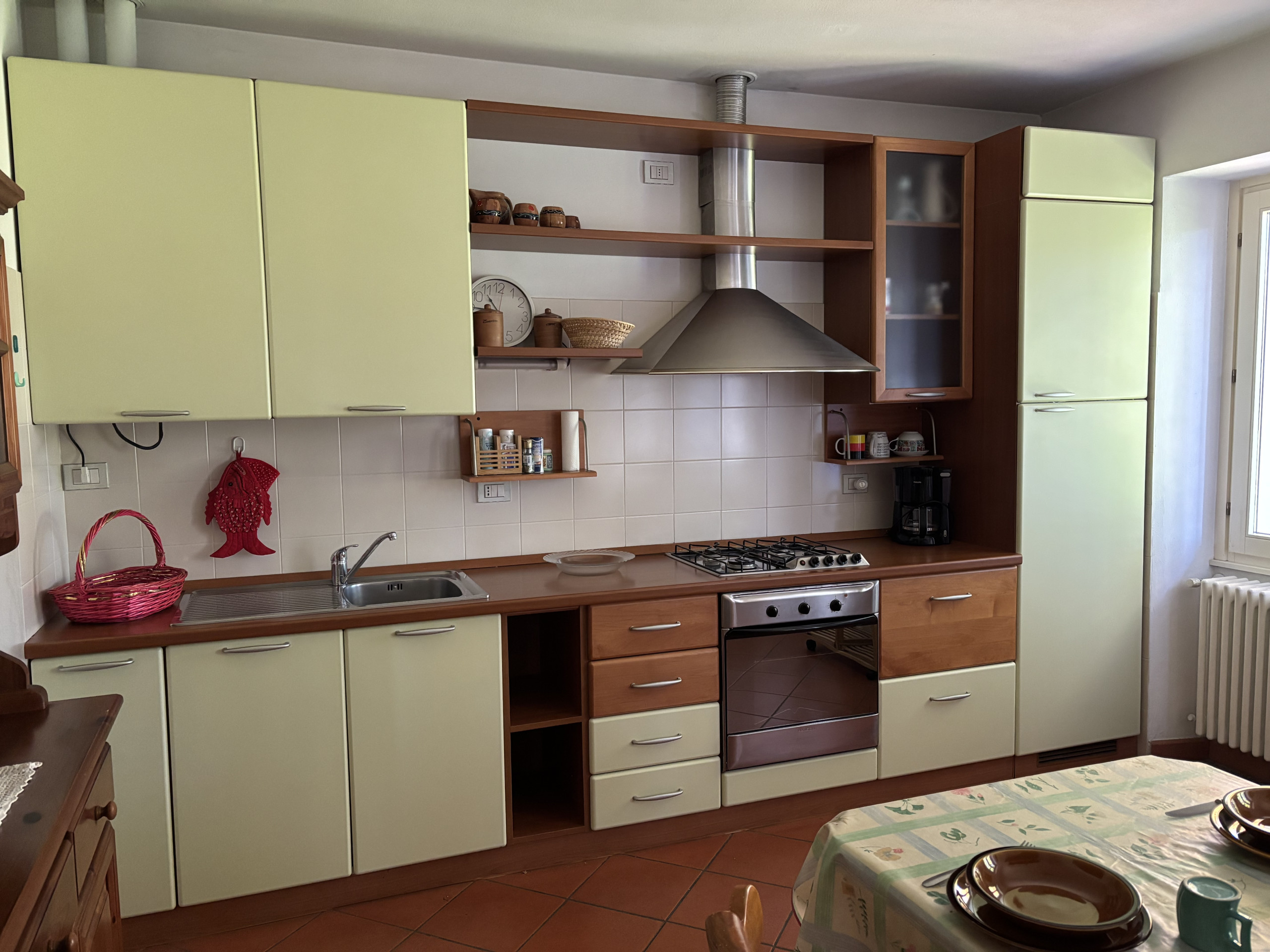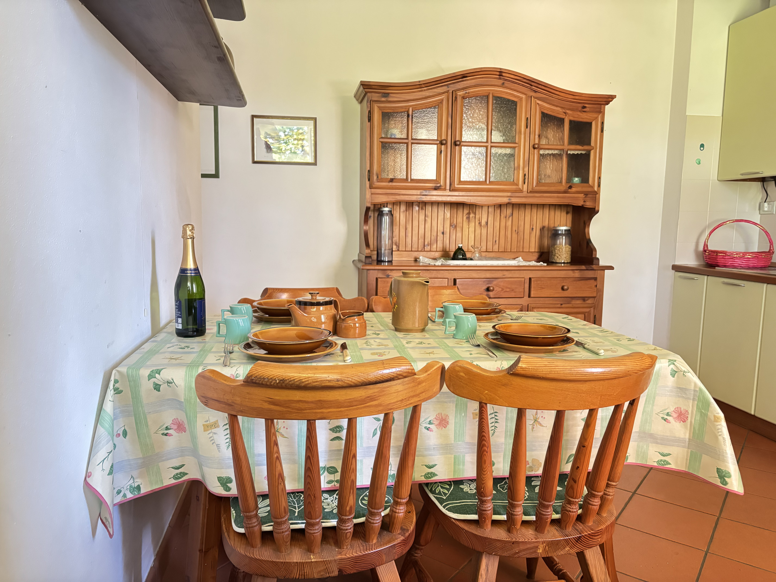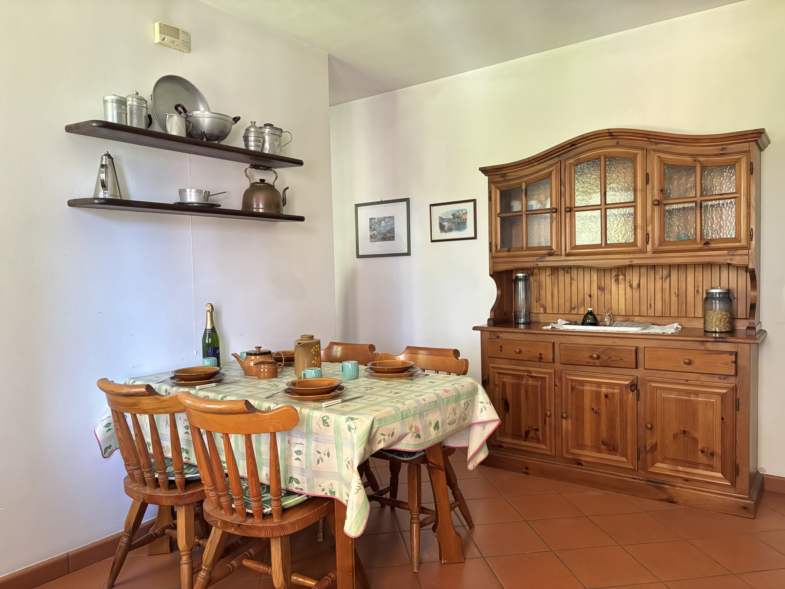 Al piano terra di una casetta a schiera, immersa nel verde di un grande parco con piscina non lontano dal centro di Luino e dal lago, vi è un grazioso appartamento, dalla superficie di circa 80mq, arredato con gusto e in modo accogliente, e munito di un adorabile piccolo giardino privato. L'appartamento è composto da un luminoso soggiorno, munito di una graziosa zona da pranzo con camino, una cucina separata assai funzionale, un ampio bagno e 2 camere da letto, per un totale di 5 posti letto. L'area esterna, oltre che dal grazioso giardinetto sopramenzionato, include anche una terrazza coperta annessa a quest'ultimo, e la zona vede che circonda la piscina, di utilizzo pubblico, già citato. La casa dispone inoltre di TV satellitare, lavastoviglie e un parcheggio privato. Animali ammessi a pagamento.