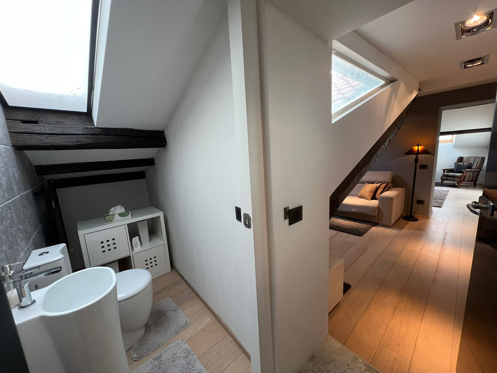 Al secondo piano di una casa tipica del lungolago di Verbania Pallanza c'è l'appartamento Charles, appartamento molto elegante e confortevole che gode un panorama meraviglioso sul lago e sulle isole Borromee. Dall'ingresso si raggiunge il soggiorno molto luminoso , diviso in due zone. Una prima con TV e salotto con divano che può diventare letto per due persone e poi si entra nella sala principale che guarda il lago dove c'è un altro salotto, grande tavolo da pranzo e la cucina moderna attrezzata con tutti gli elettrodomestici. A lato del soggiorno c'è un piccolo balcone con tavolino e due sedie per sorseggiare un caffè guardando il lago e le isole. Sempre sui questo piano si trova un primo bagno con vasca / doccia con idromassaggio, un altro secondo bagno con ampia doccia e zona lavanderia e una grande camera da letto matrimoniale. Salendo le scale si raggiunge l'attico climatizzato dove c'è un piccolo bagno di servizio, una grandissima suite con letto matrimoniale e una zona salotto con guardaroba, Tv e divano che può essere anche aperto e diventare un altro letto matrimoniale. L'appartamento è comodissimo nel centro di Pallanza con a disposizione un pass per lasciare la macchina nei parcheggi nelle vicinanze. L'imbarcadero si trova a un minuto a piedi così come il lungolago con i bar ei ristoranti e la pista ciclabile che porta a Intra. Location lussuosa ed elegante per una vacanza di alto livello nel cuore della città.