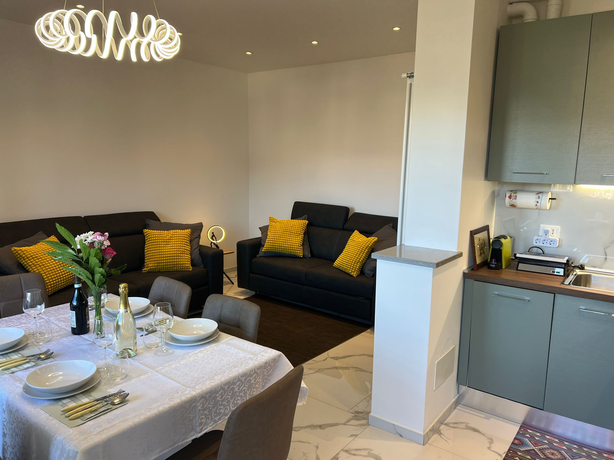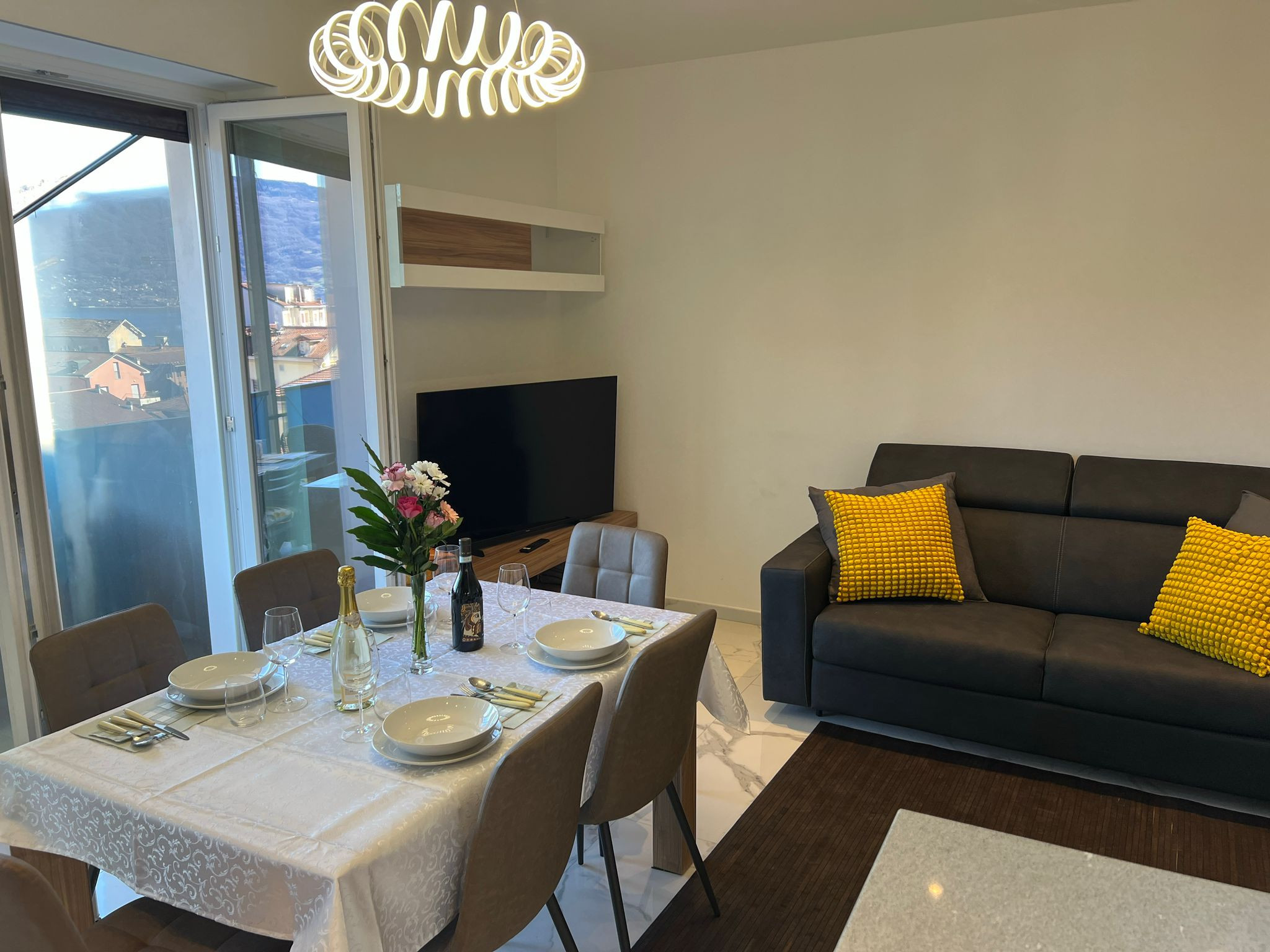 Al secondo piano con ascensore di un bellissimo palazzo del centro storico di Verbania Suna di nuova e completa ristrutturazione c’è l’appartamento Lago Azzurro. L’appartamento stesso è nuovissimo in arredi e impianti e ha un design moderno ed efficiente. Dall’ingresso si accede alla zona living con cucina aperta completamente attrezzata, tavolo da pranzo per 4 persone, divano che diventa letto matrimoniale e Smart Tv. Dal soggiorno si gode una bella vista del lago e dei caratteristici tetti di Suna. Lo spazioso terrazzo è attrezzato con tavolo per 4 persone. Completano l’appartamento la camera da letto matrimoniale con armadio e un modernissimo bagno con doccia. Vicino all’ingresso dell’appartamento si trova un armadio con la lavatrice. Al piano basso del palazzo si trova il box singolo a disposizione degli ospiti da dove si prende l’ascensore che porta all’appartamento. A soli 200 metri il lungolago di Suna con la spiaggia, la piscina e i vari locali per la ristorazione. In circa due minuti di auto il centro di Verbania è raggiungibile, dove sono situati i vari supermercati. Lago Azzurro vi offre una vacanza a Suna, la perla di Verbania, situato in un palazzo all’avanguardia per l’efficienza energetica.