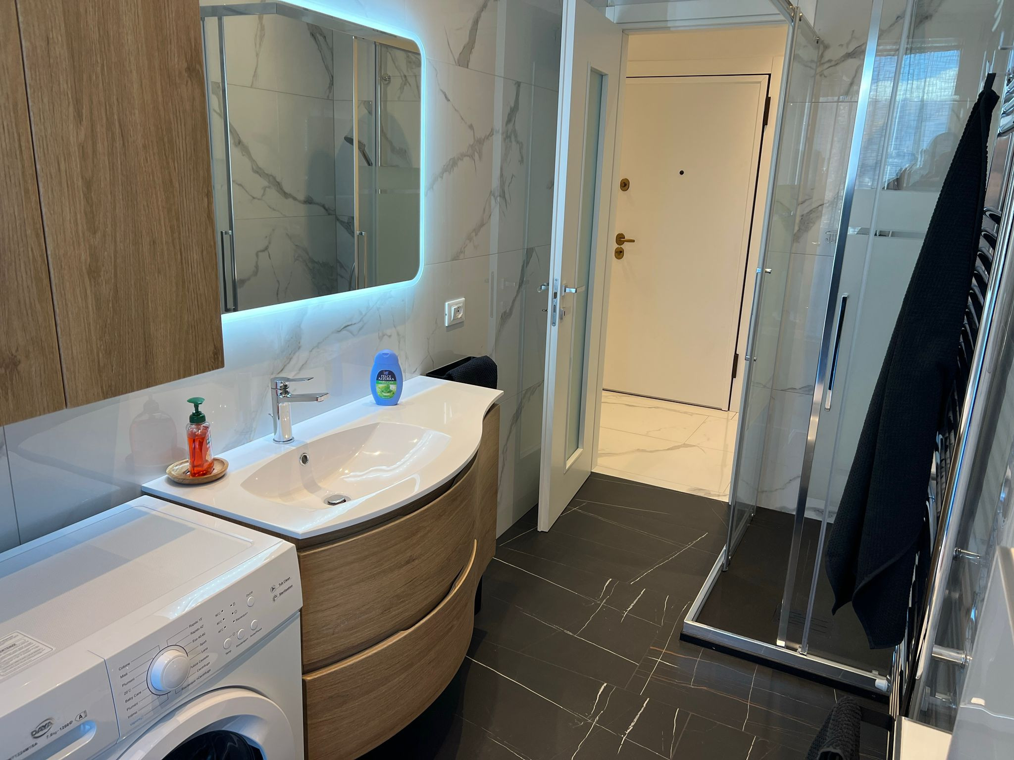 Al piano attico di un grande palazzo nel centro di Verbania c’è l’appartamento Zagosta. L’appartamento completamente ristrutturato e arredato a nuovo è servito da ascensore, è molto moderno e funzionale. Il soggiorno ha la zona salotto con Tv e divano letto matrimoniale, il tavolo da pranzo e una cucina aperta dotata di tutti gli elettrodomestici. Il soggiorno ha due grandi e luminose vetrate con vista lago, da lì si accede al grande terrazzo attrezzato con tavolo da pranzo e salotto per il relax. Da lì si gode una bella vista della città, del lago e delle montagne circostanti. Il bagno ha una grande doccia e la lavatrice. La camera da letto è molto spaziosa, ha il letto matrimoniale e la vista lago. L’appartamento ha tutti i comfort, Wi-Fi e aria condizionata. Sotto il palazzo sono disponibili lungo il viale molti parcheggi gratuiti. In due minuti a piedi si raggiungono i grandi supermercati e in 5 minuti a piedi il lungolago con i bar, i ristoranti e l’imbarco per le isole Borromee.